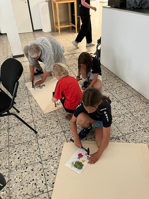 Gemeinsam werden mit den Säften von frischen Blumen Drucke anfertigen, die aussehen wie kunstvolle Aquarelle.