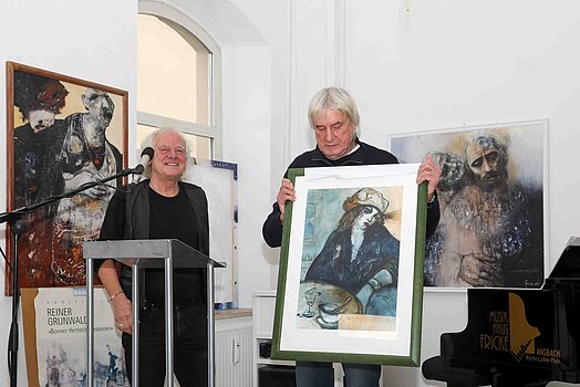 Gezeigt werden Gemälde in Acryl und Aquarelle und Skulpturen, die ganz aktuell sowie in den letzten Jahren entstanden sind und quasi „mit einem Blick zurück“ das Schaffen des Ansbacher Malers dokumentieren.
